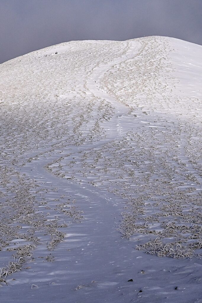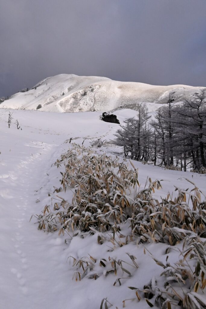 雪のない夏には緑の熊笹を行く この曲線の山頂への登山道が見どころのようです