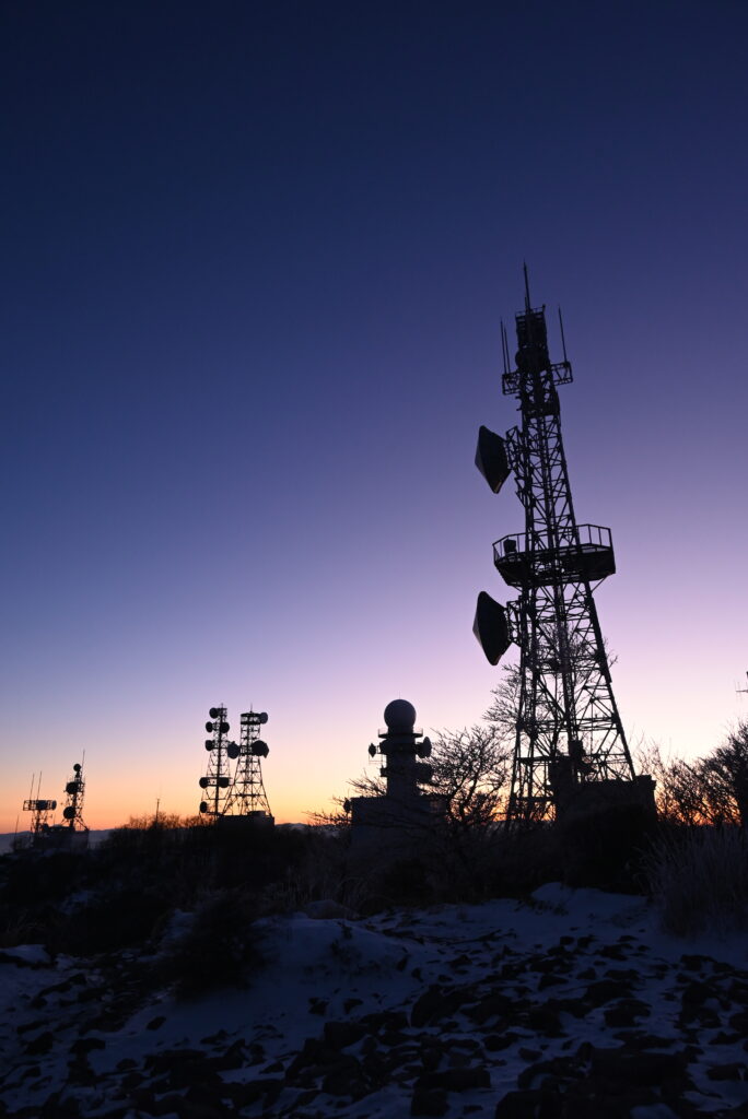 電波塔群とブルーモーメントの空