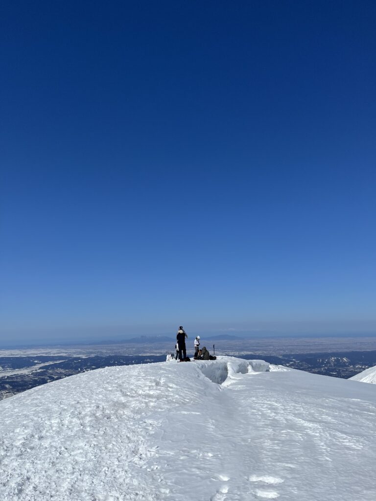 「あわがたけ」と読む 初めて見た時分からなかった 関越高速利用長岡を過ぎ見附市から入って50分くらい 今の時期雪山が身近に楽しめる山として最近特に知られるようになったと思う 標高100m位から1293mの山頂まで標高差1200 6時間かかりました 中央右が山頂と思います