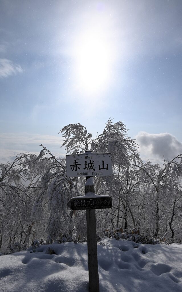 山頂です が 赤城の山頂は遠くの景色がほとんど見えません この先5分位歩けば絶景スポットがあります 今日は気温が低く朝早いのでダイヤモンドダストも見ることが出来ました